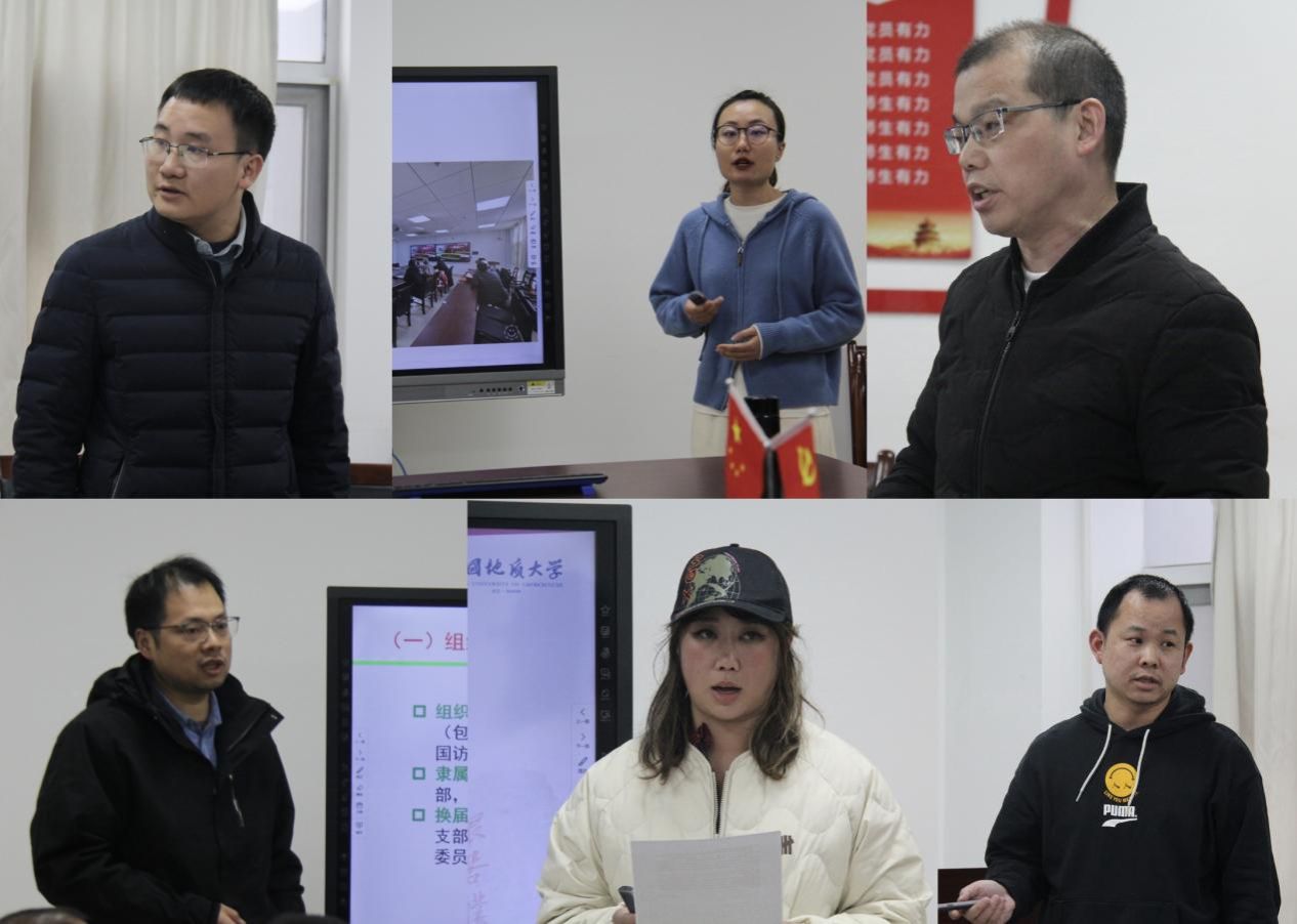述职评议考核采用现场述职的方式进行。6个教工党支部书记对照党支部建设“七个有力”要求和学校教职工党支部、学生党支部考核评价指标体系(地大党发〔2021〕31号),围绕党纪学习教育主题活动的开展;习近平新时代中国特色社会主义思想、党的二十大和二十届三中全会精神、全国教育大会精神的学习贯彻;学校第十三次党代会的工作部署;党建引领保障漫蛙漫画 高质量发展的建设水平的提升;党支部对本科教育教学审核评估工作的推进;民族宗教、意识形态的排查举措;深化平安校园建设、履行全面从严治党第一责任人职责,推进“清廉地大”建设等方面汇报了支部重点工作完成情况、特色活动开展情况、存在的问题分析,以及下一步工作设想。