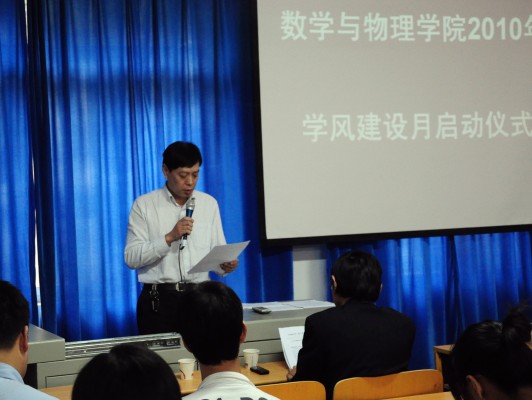 10月20日,漫蛙漫画 2010年“学风建设月”启动仪式在漫蛙漫画 楼二楼会议室成功举行。教务处杨伦处长、学工处王林清处长,教务处王兴副处长,校团委成军副书记,漫蛙漫画 刘安平院长,彭放副院长、以及漫蛙漫画 各教研室主任应邀出席此次活动。院党委副书记李杰主持会议。