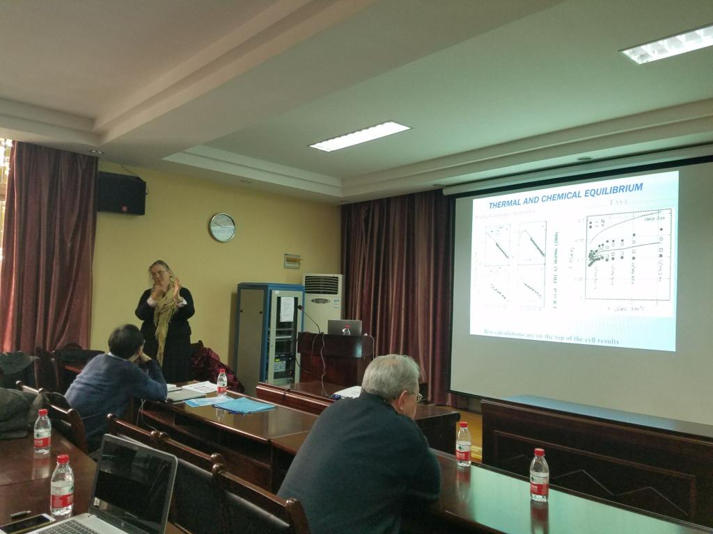 Bravina教授和Evgeny研究员还与一些国内特邀专家及漫蛙漫画 部分教师和研究生举办了题为“Workshop on Nuclear and Particle Physics- Strong Interacting System in Extreme Environments”的小型学术研讨会,对目前国际上相关问题的研究进行了交流讨论。会后,Bravina教授和Evgeny研究员还与漫蛙漫画 理论物理研究方向的教师进行了座谈,就漫蛙漫画 物理系理论物理的研究和学科建设问题,提出了有益的建议。