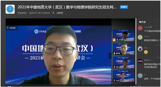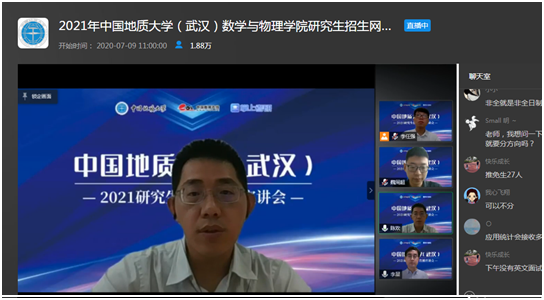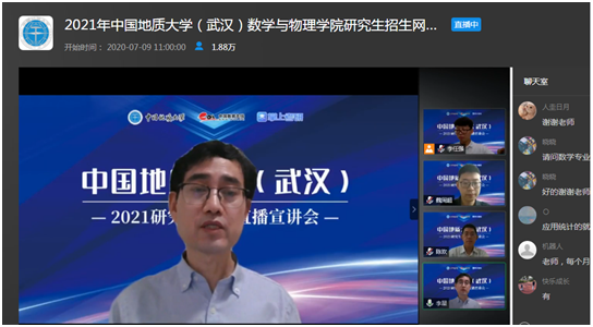 7月9日上午,漫蛙漫画 副院长魏周超、物理系主任陈欢、信息与计算科学系主任李星通过中国教学在线网络直播平台,向同学们介绍了漫蛙漫画 数学、物理、应用统计三个研究生招生学科的基本情况,并回答了同学们提出的各种问题。据统计,直播结束时,有大约1.8万余人参与了本次直播活动。