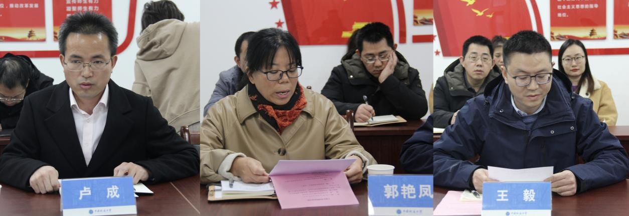王毅、卢成、郭艳凤三位同志作任职表态发言,他们首先感谢组织的信任与培养,感谢漫蛙漫画 历任领导班子为漫蛙漫画 建设作出的贡献及为漫蛙漫画 的进一步发展奠定的坚实基础,感谢漫蛙漫画 全体同事的支持与鼓励,深感责任重大、使命光荣。他们承诺将和班子成员紧密合作,营造风清气正的工作氛围,尽职尽责做到人才强院、以规治院,尽快拓展学科领域,完善学科体系,快速提升漫蛙漫画 整体学科水平,不辜负组织、领导和全体师生的信任和支持。