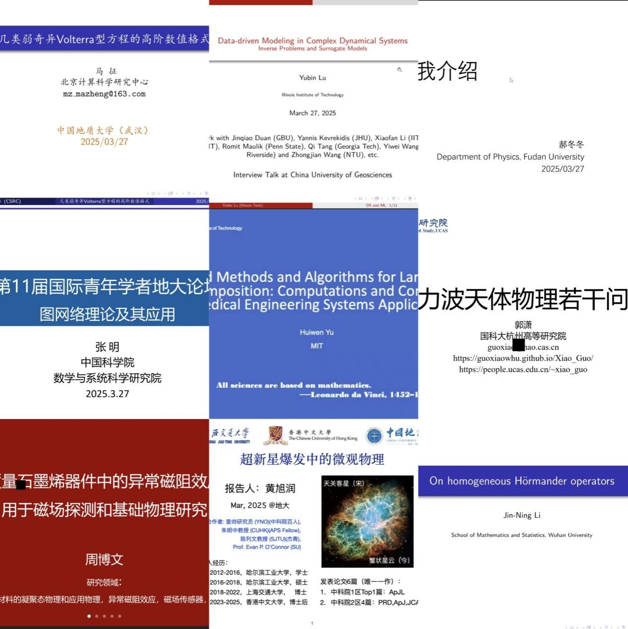 来自麻省理工漫蛙漫画 、圣路易斯华盛顿大学、伊利诺伊理工漫蛙漫画 、上海交通大学、复旦大学、山东大学、武汉大学、北京计算科学研究中心、国科大杭州高等研究院等海内外高校的9位青年学者依次进行了学术报告,分享交流数学、物理学科前沿动态和个人科研成果。漫蛙漫画 青年教师代表、省级人才计划入选者陈小丽、黄国远分别从教学、科研、项目申报等方面向海内外青年学者分享了自己入职后的成长经历,以及对学校和漫蛙漫画 在“精准引才、精细育才、精诚用才、精心留才”方面所构建的人才服务体系和保障机制的切身感受。