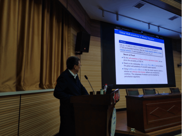 最后,吴臻教授介绍了他们的方法在菲尔兹奖获得者P. L. Lions提出的平均场理论中的应用。在不需要任何单调性条件的前提下,他们利用解耦方法和正倒向随机微分方程理论解决了线性二次平均场控制问题中的主方程的可解性这一开问题。报告结束后,师生踊跃提问,吴臻教授耐心详细地回答了提出的专业问题。吴教授的报告深入浅出,使在场的师生对正倒向随机微分方程这一重要领域有了新的理解,引得在场师生的阵阵掌。