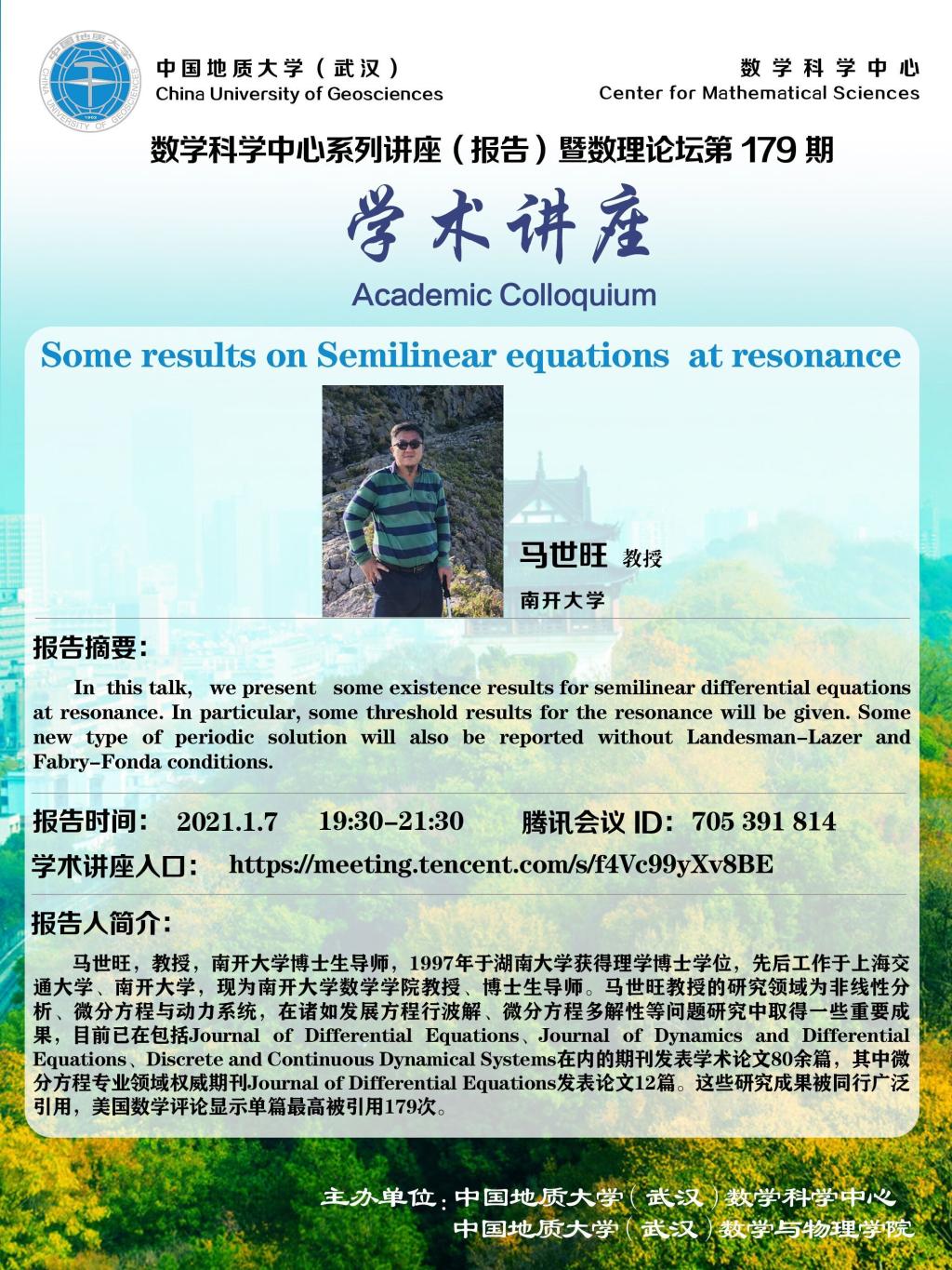 "漫蛙漫画 论坛"第179期暨数学科学中心系列讲座(报告):Some results on Semilinear equations at resonance