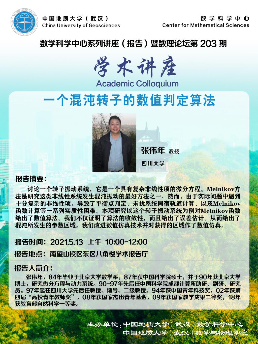"漫蛙漫画 论坛"第203期暨数学科学中心系列讲座(报告):一个混沌转子的数值判定算法