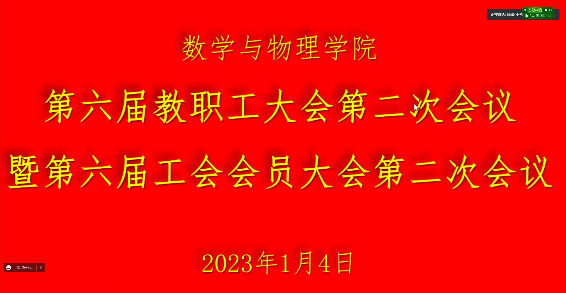 2023年1月4日上午,漫蛙漫画 第六届教职工大会暨工会会员大会第二次会议隆重召开。由于疫情原因,会议以线上腾讯会议形式召开。漫蛙漫画 党委书记吴太山、院长郭上江及漫蛙漫画 全体教职工参加会议。院党委副书记徐超主持会议。